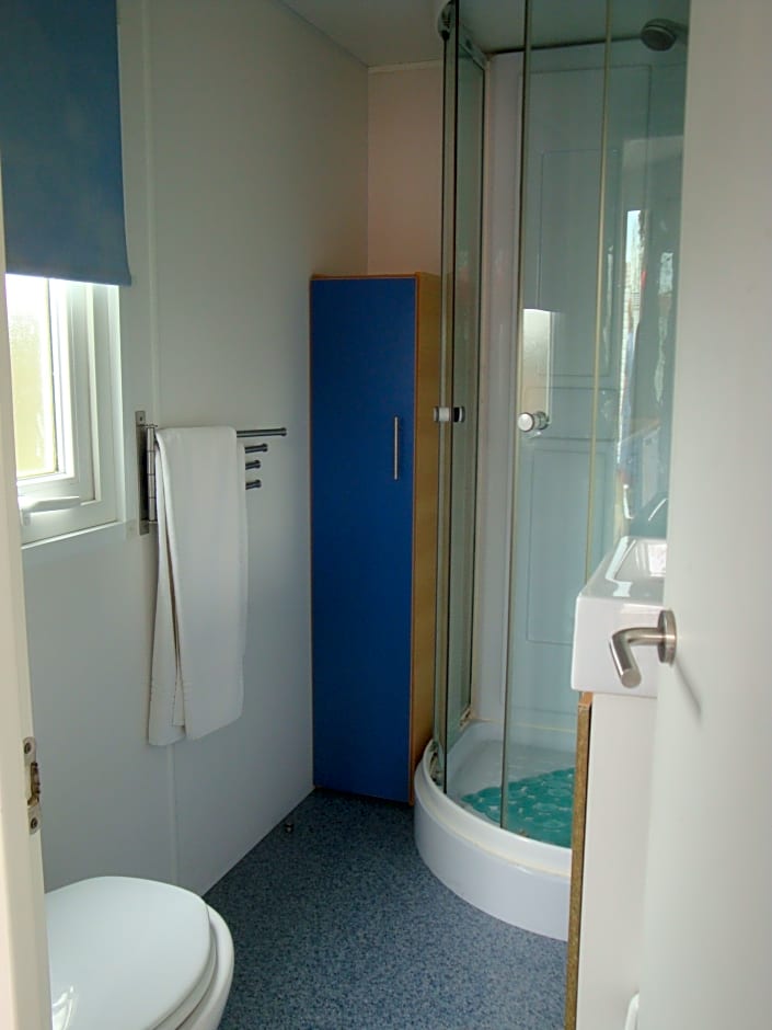 This mobile home is consisted of of 1 living room, 1 separate bedroom and 1 bathroom with a shower. The mobile home's kitchenette, which features a refrigerator and kitchenware, is available for cooking and storing food. A seating area with a TV, a dining area and an outdoor dining area are featured in this mobile home. The unit offers 1 bed.
